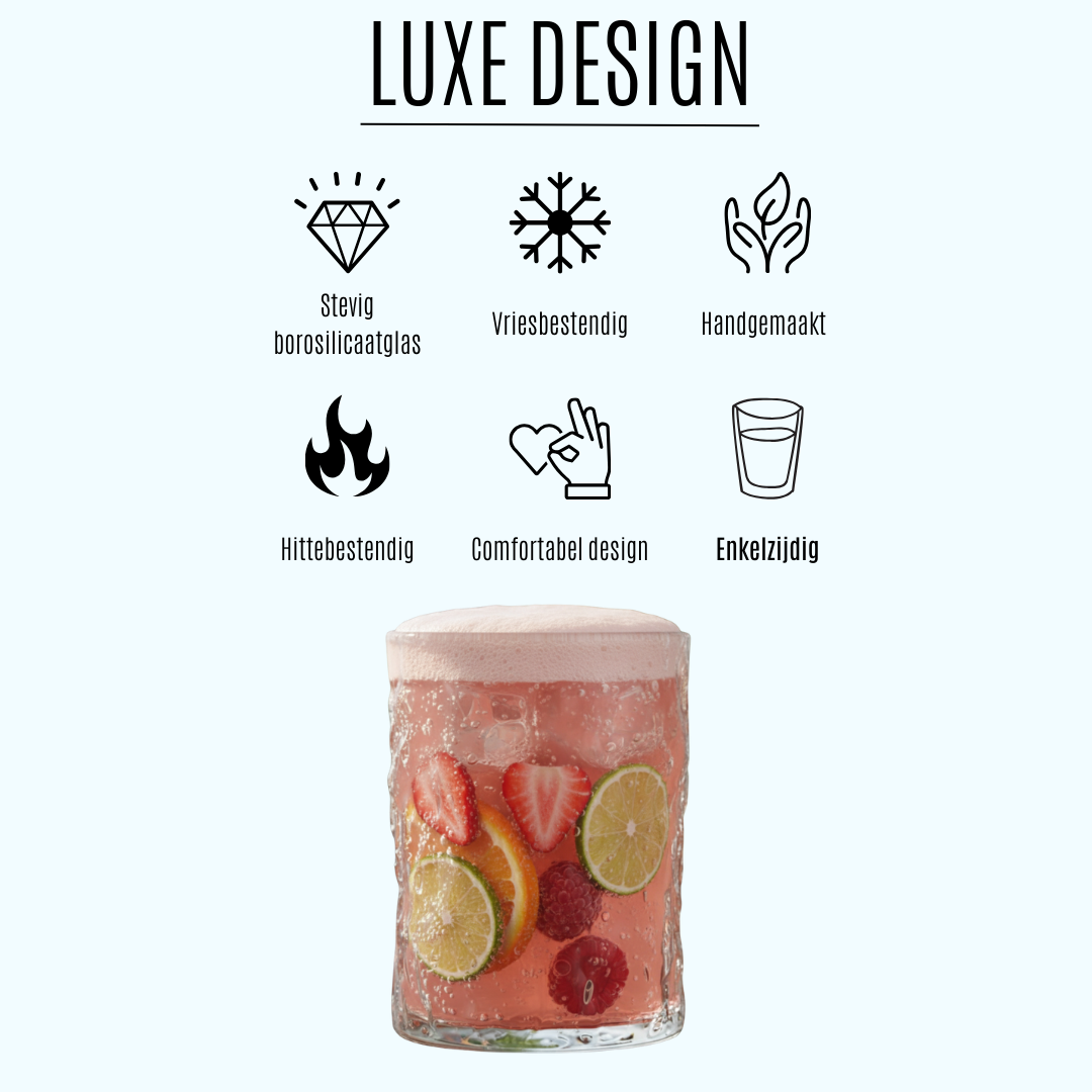 Heel tevreden over mijn bestelling! De drinkglazen zien er super stijlvol uit en voelen stevig aan. Levering was ook sneller dan verwacht. Zeker een aanrader.
