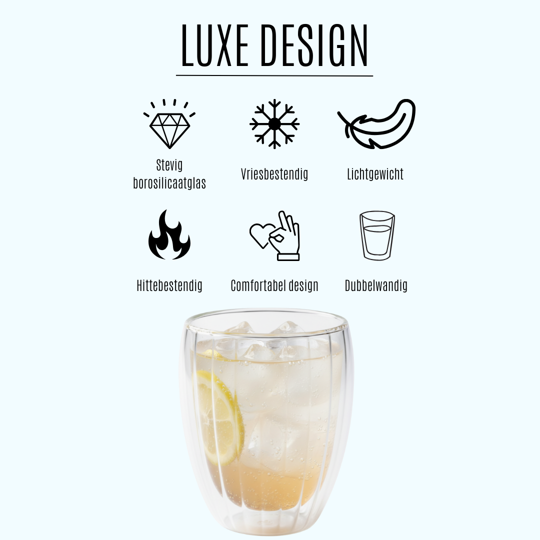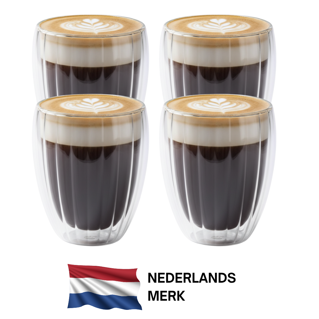 De dubbelwandige glazen zijn echt een gamechanger! Geen warme handen meer en mijn koffie blijft langer op temperatuur. Erg tevreden.